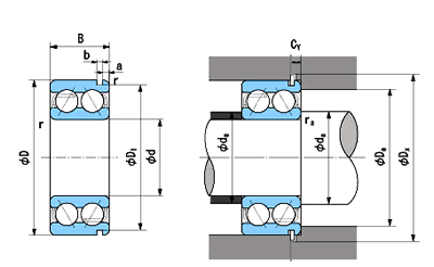 軸承代號(hào): NACHI 5207N - 帶止動(dòng)環(huán)槽雙列角接觸球軸承