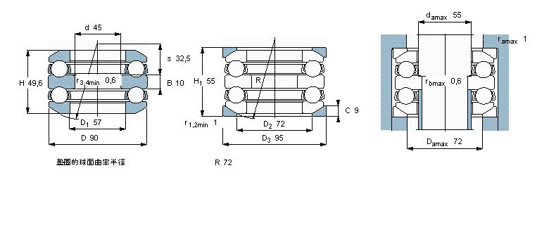 | 推力球軸承, 雙向,帶球面軸承座墊圈 | ||||||||||||