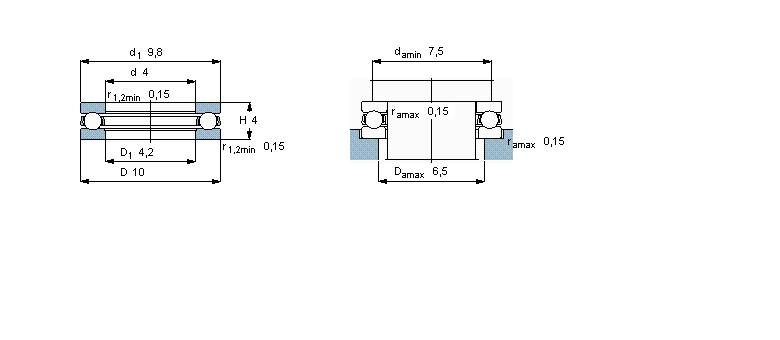 | 推力球軸承, 單向 | |||||||||||